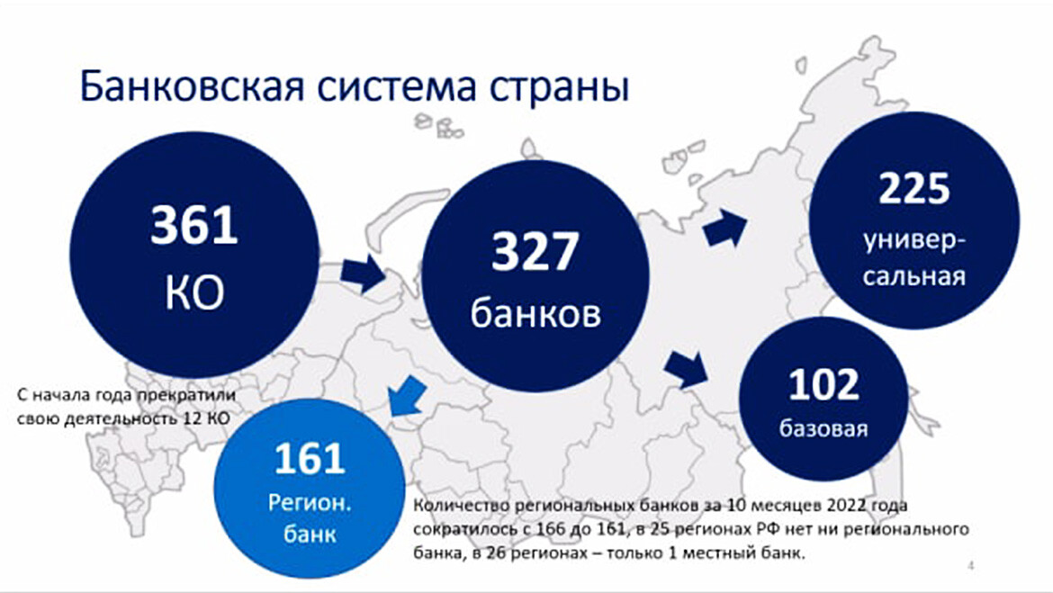 С начала года число региональных банков в России сократилось со 166 до 161, начал с вроде бы негативного факта президент Ассоциации российских банков (АРБ), академик российской академии наук (РАН) Гарегин Тосунян . Однако его же он отнес и к позитивным – в этом году число прекративших работу банков было минимальным за последние годы.
