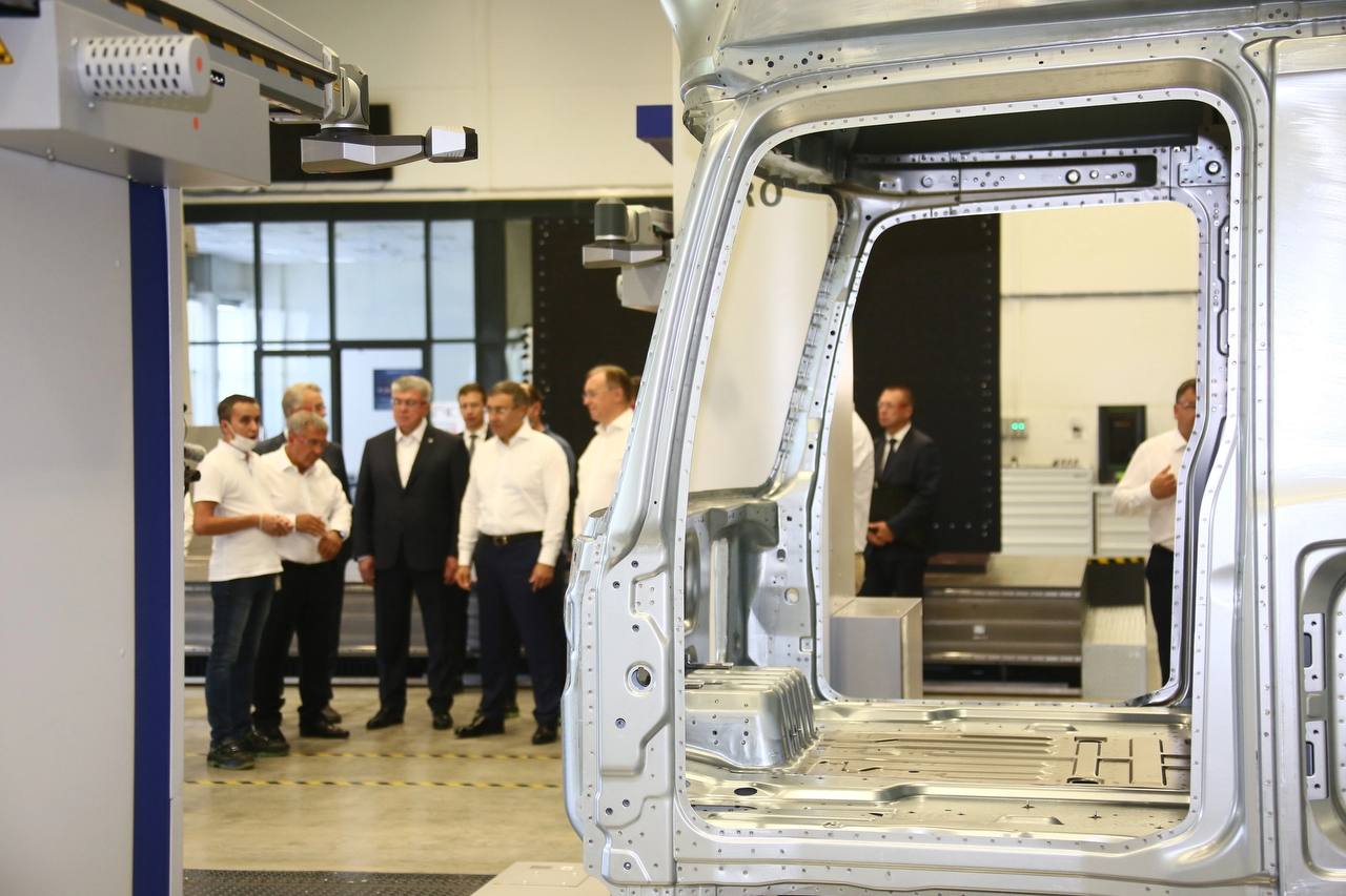 Сегодня президент Татарстана Рустам Минниханов и министр науки и высшего образования РФ Валерий Фальков посетили «КАМАЗ». В сопровождении гендиректора челнинского автогиганта Сергея Когогина они осмотрели производственные площадки компании, ознакомились с современными технологиями и модельным рядом «КАМАЗа». В том числе с грузовыми автомобилями на электротяге, электробусами, карьерным самосвалом КАМАЗ-6561 «Геркулес», беспилотным автомобилем КАМАЗ-6559 «Юпитер» и техникой на водородных топливных элементах.