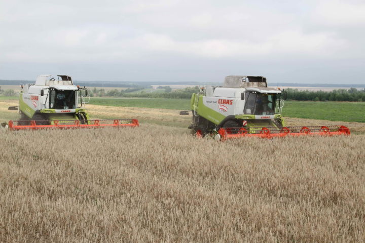 Средняя урожайность с одного гектара составляет 49,1 центнера, по Республике Татарстан-38,2 центнера. По максимальной урожайности с одного гектара лидирует хозяйство “Калмурзино” - 55,9 центнера с гектара. 38 комбайнеров выполнили свои планы обмолота, им всем были вручены премии главы района. Комбайнеры хозяйства ”Рус" приступили к обмолоту рапса и,обмолотив 40 гектаров, собрали 16,3 тонны рапса.Урожайность рапса в этом хозяйстве составляет 19 центнеров с гектара.Вчера на полях района работали 57 комбайнов.