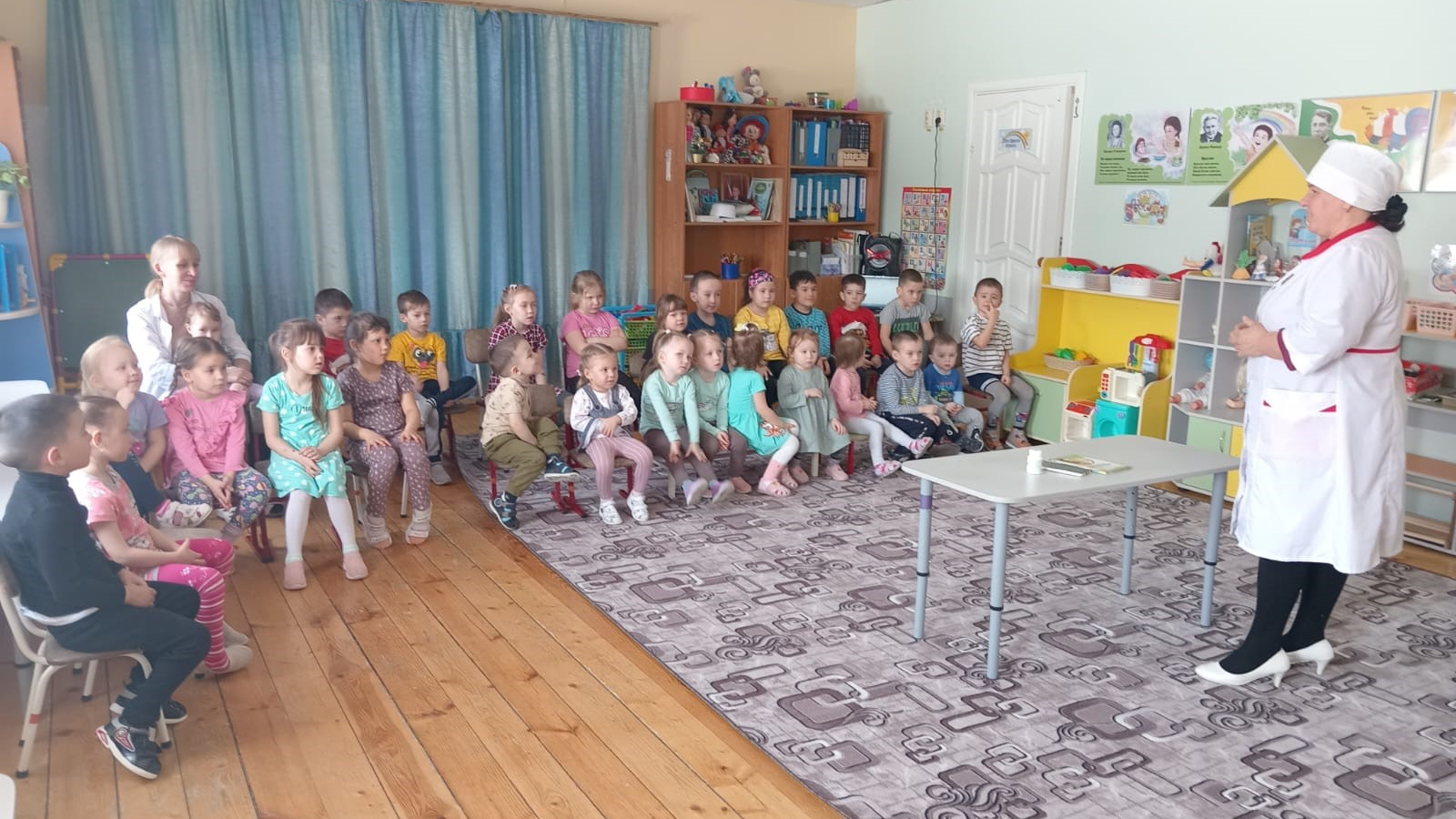 02.04.2024. фельдшеры Сатышевского и Явлаштауского ФАП провели активные беседы на тему «Охрана здоровья детей» Дети познакомились с предметами, которые нужны в работе при медицинской помощи (шприц, вата, весы, лекарство, таблетки, йод, зеленка, грелка, термометр и т.д.). А также объяснили почему нельзя трогать, играть с медицинскими инструментами, самостоятельно пить лекарства. Желающим измерили температуру градусником, посмотрели горлышко. А в конце экскурсии рекомендовали детям кушать свежие овощи и фрукты.