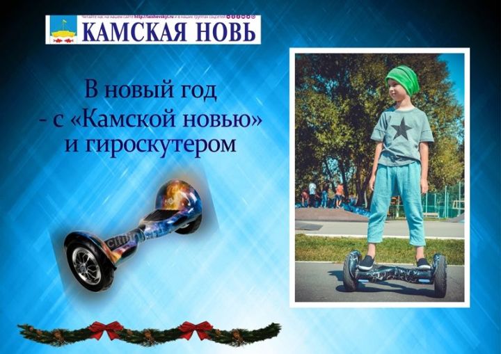 Редакция газеты «Камская новь» проводит акцию «В новый год – с «Камской новью» и гироскутером». Каждый, кто выпишет наше издание на первое полугодие 2022 года, может стать участником розыгрыша гироскутера и других призов.