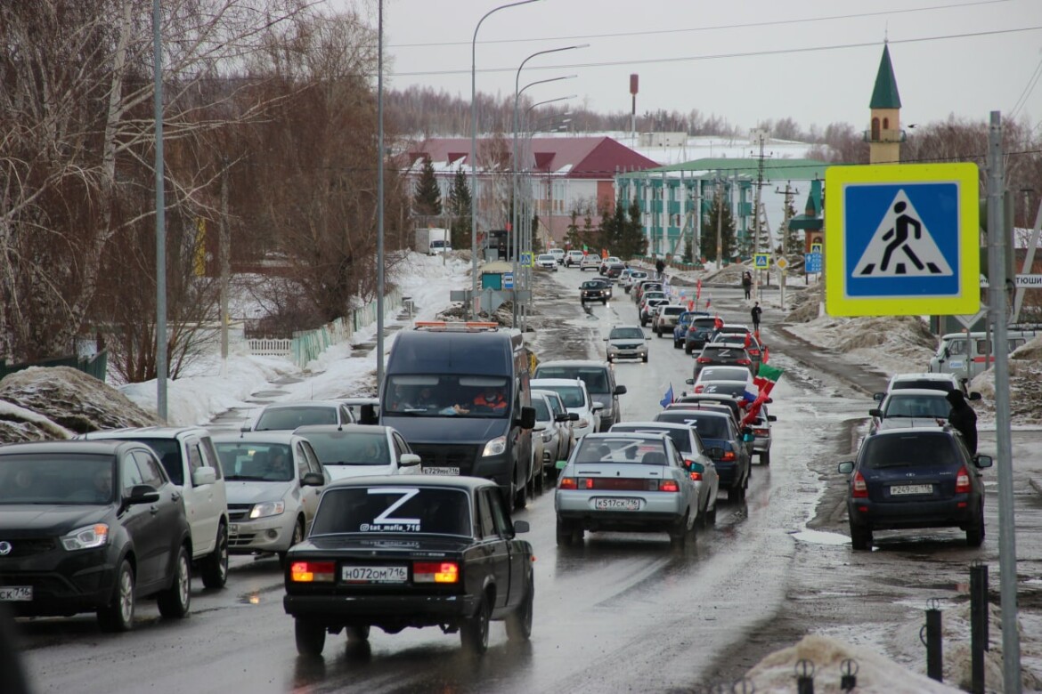 В Тетюшах автовладельцы более 70 автомобилей приняли участие во флешмобе с наклеенными на лобовых и задних окнах символами V и Z, а также вооружившись флагами Советского Союза, России и Татарстана. Об этом пишет газета «Авангард».