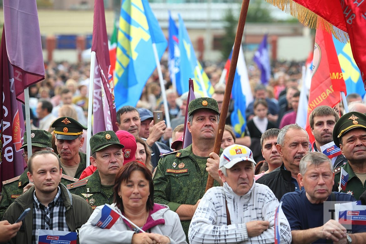 «Наконец-то люди на Донбассе обретут мирное небо над головой»Концертная программа с заслуженными артистами Татарстана, музей казанского танкового училища, военно-полевая кухня – это все можно было увидеть сегодня на митинге в день старта референдумов в Донецкой и Луганской народных республиках, а также Херсонской и Запорожской областях. Поддержать население Донбасса, а также Российскую Армию пришли несколько тысяч человек. Каждый верит – совсем скоро Россия одержит победу.