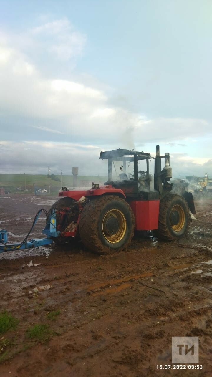 Ночью в поле у татарстанского села вспыхнул трактор