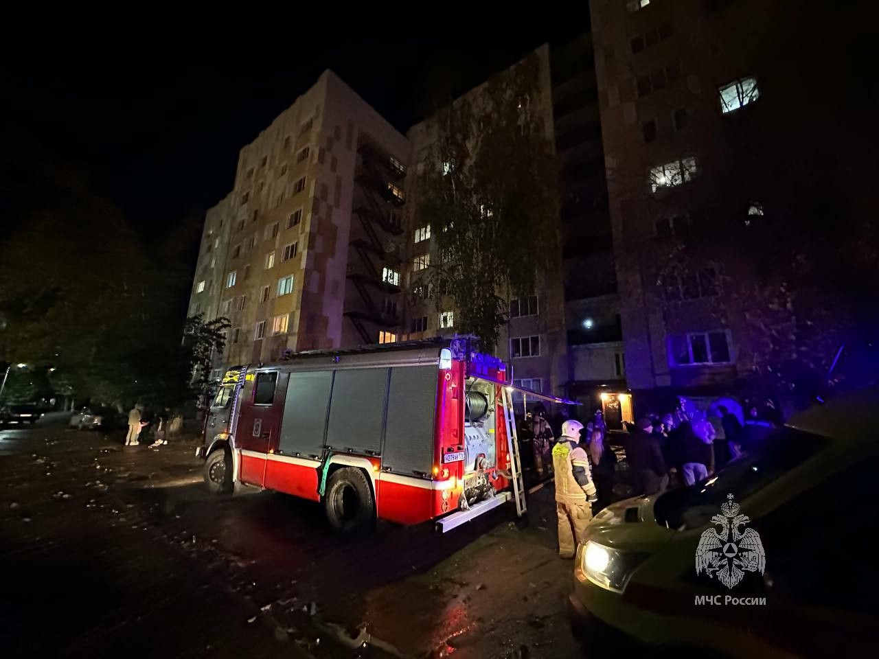 Еще двух обитателей квартиры спасатели вывели по лестнице, их госпитализировали.