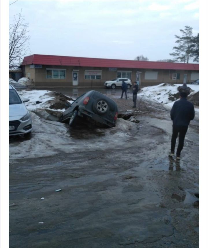 В Елабуге под припаркованной машиной провалился асфальт