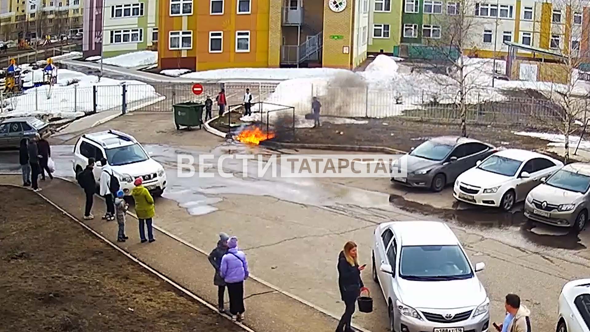 Пластиковый бак быстро загорелся. Очевидцы вместо того, чтобы потушить, снимали происходящее на телефон. Только местный дворник спас один из трех контейнеров, остальные сгорели. К месту были вызваны пожарные.