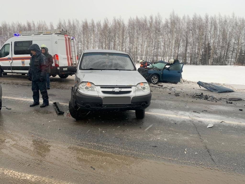 В Татарстане ВАЗ совершил лобовое столкновение с Toyota, а потом отлетел в Chevrolet.