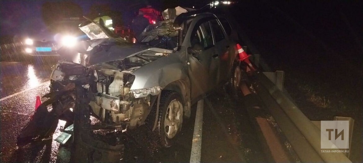 Как рассказали «Татар-информу» очевидцы трагедии, водитель внедорожника Renault врезался на скорости в грузовик «КАМАЗ», который стоял на обочине.