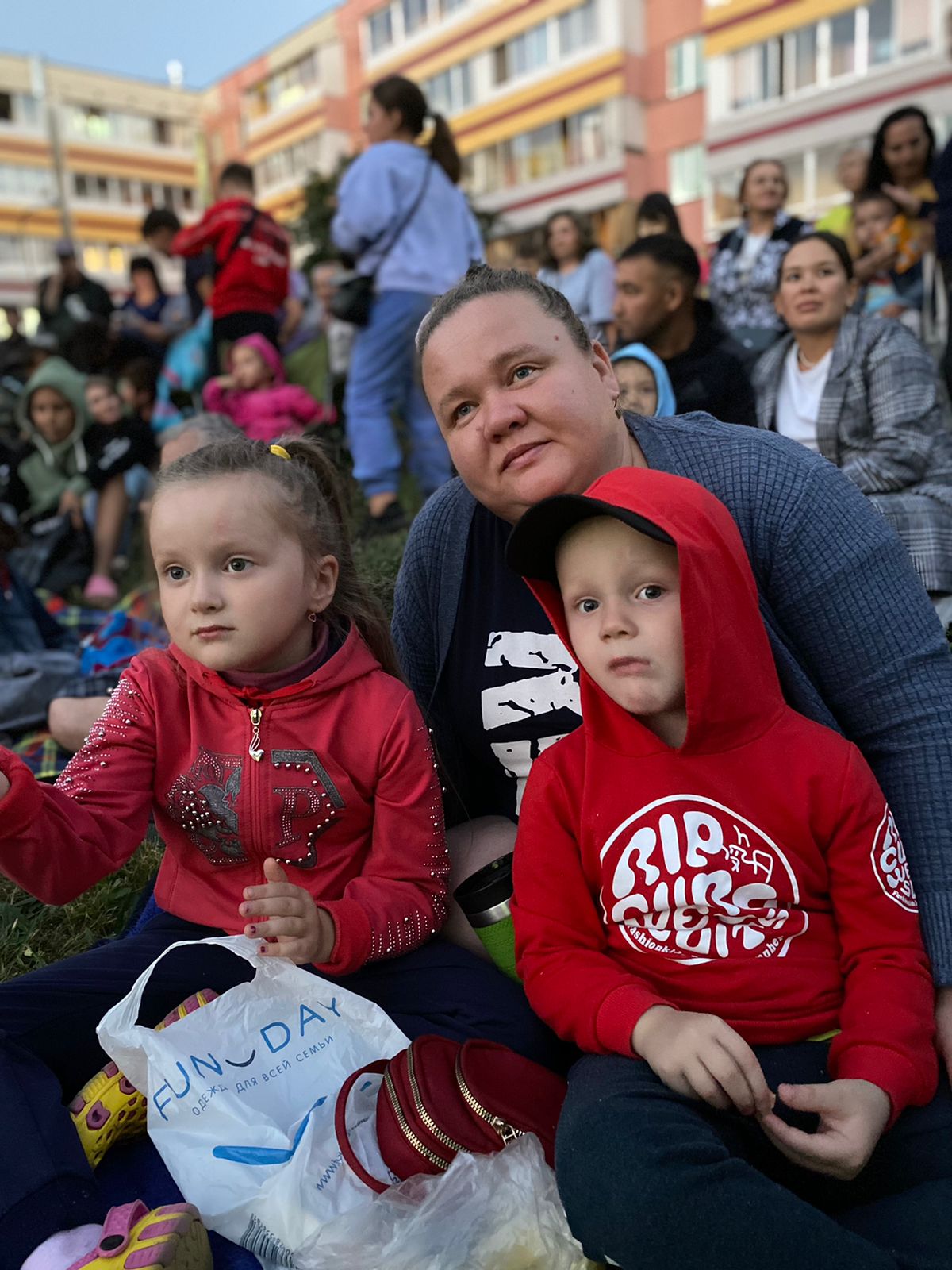 Во дворе дома 17а/20 был продемонстрирован мультфильм для жителей микрорайона. Семьи с детьми вышли во двор дружной компанией.
