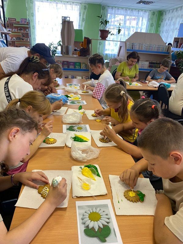 В здании библиотеки для юных путешественников был организован мастер- класс по росписи имбирных пряников. Своими руками ребята украсили глазурью пряники-ромашки.