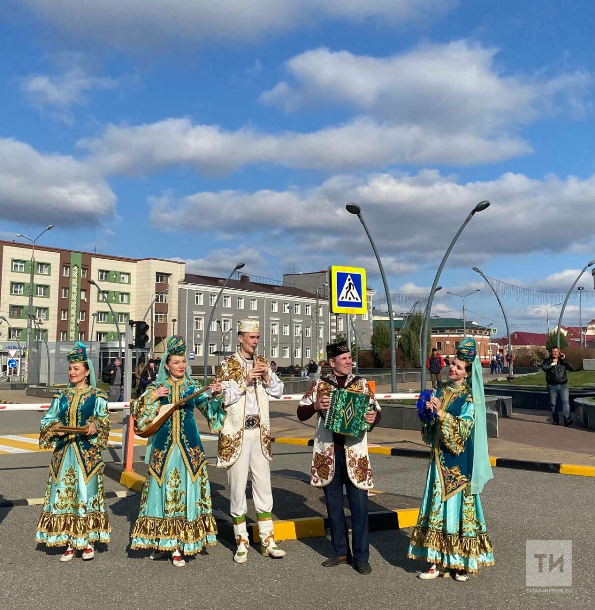 Гостей республики встречали татарские песни и танцы фольклорно-эстрадного ансамбля «Sornay» под аккомпанемент народных инструментов, таких сорнай, кубыз, саз, домра и гусли.