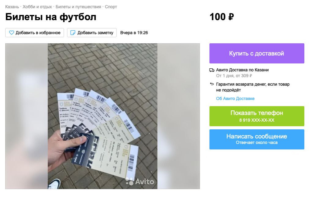 В интернет-сервисе «Авито» появились объявления о продаже бесплатных билетов на матч заключительного 30-го тура Российской Премьер-лиги «Рубин» – «Уфа».