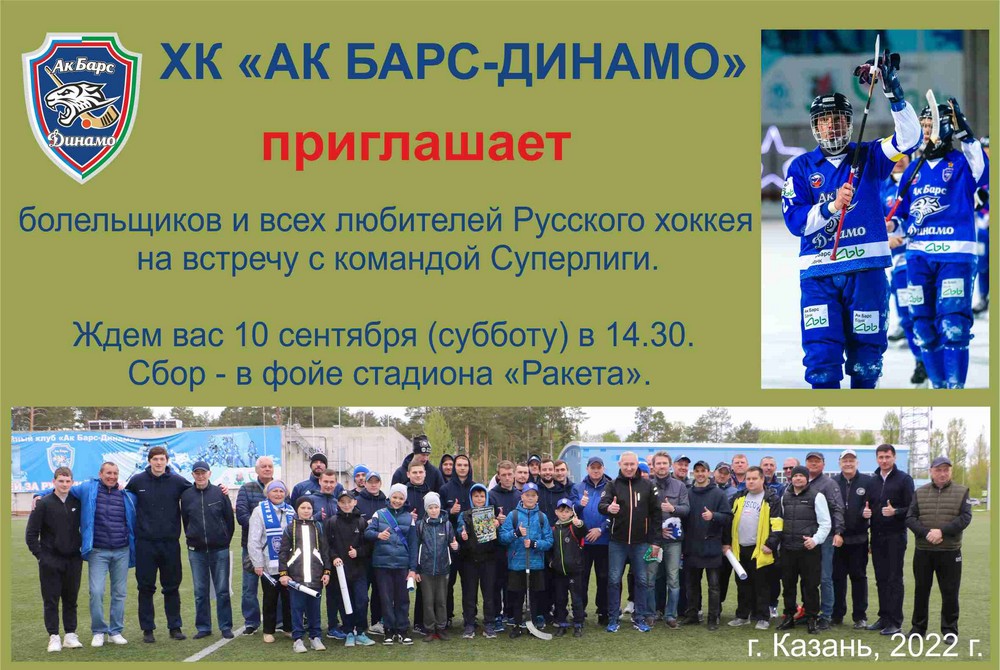 Хоккейный клуб «Ак Барс-Динамо» приглашает болельщиков и всех любителей Русского хоккея на встречу с нашей командой мастеров.