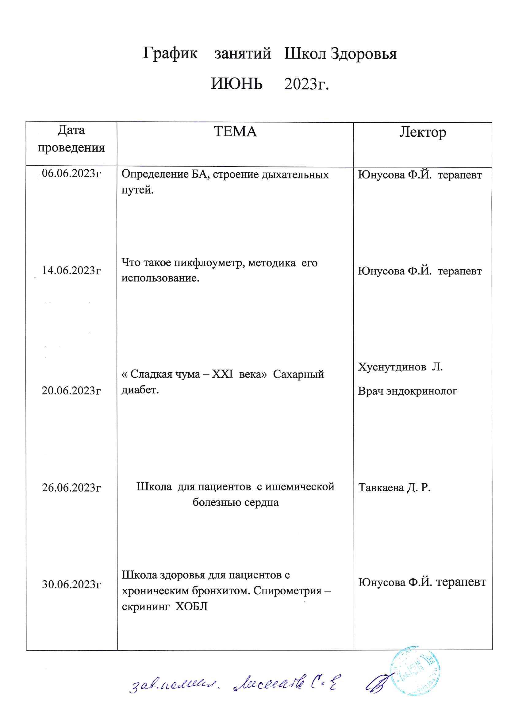График школ здоровья на июнь 2023 года