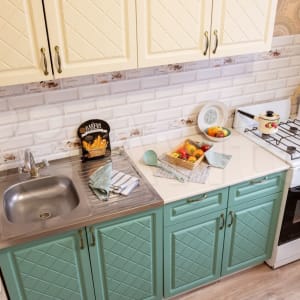 - кухонная техника: электрический чайник, холодильник, СВЧ, газовая плита с 4 конфорками