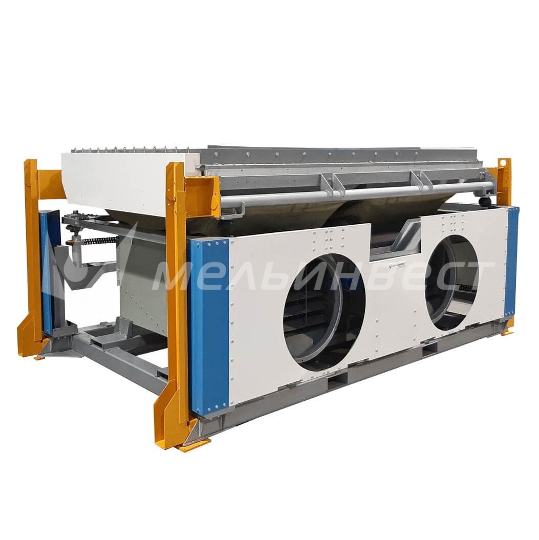 станина; вибропривод. В нем меняется механизм регулирования продольного угла наклона, а также эксцентриситет. Здесь находится виброрама с каркасом, декой и механизмом регулирования поперечного угла наклона. Для мелких семян дека делается из ткани, для остального зерна из стальной сетки с отверстиями диаметром 0,5-0,6 мм; приемник семян с ограничительными заслонками; вибропитатель с подставкой; электропривод; устанавливаемый отдельно, пульт управления.Над декой крепятся узкие продольные планки, называемые рифами. Их высота постепенно уменьшается. Дека наклонена в поперечном направлении до 5,5°. Эксцентриковый вал обеспечивает колебания. Вариатор регулирует частоту вращения.