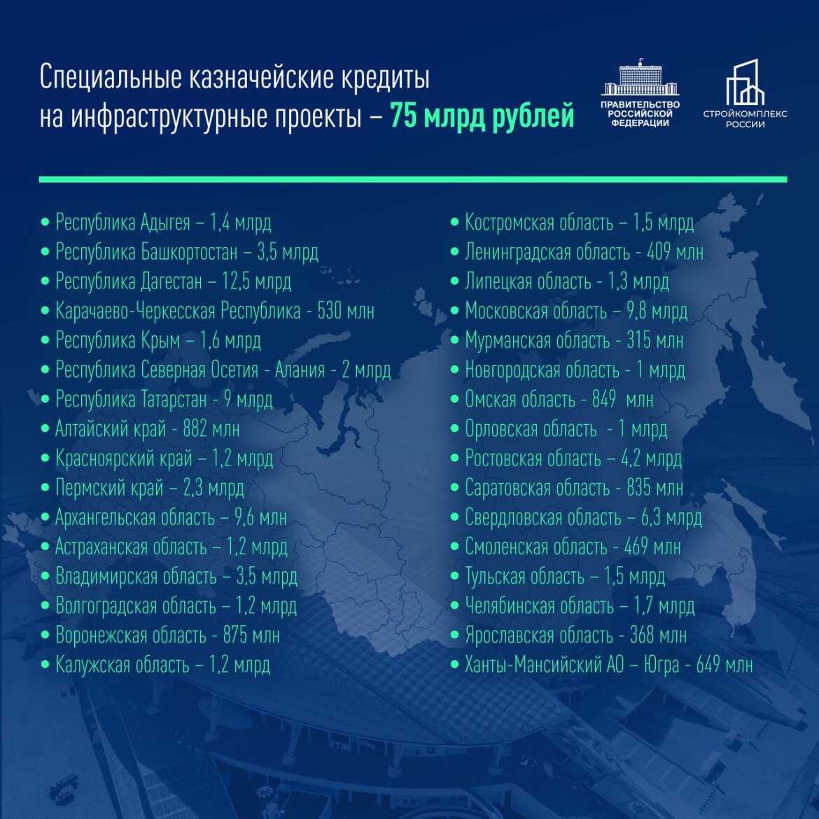 «61 проект, который повлияет на жизнь граждан»Штаб Правительственной комиссии по региональному развитию в России под руководством вице-премьера Марата Хуснуллина одобрил заявки 32 регионов на специальные казначейские кредиты (СКК) для реализации инфраструктурных проектов.
