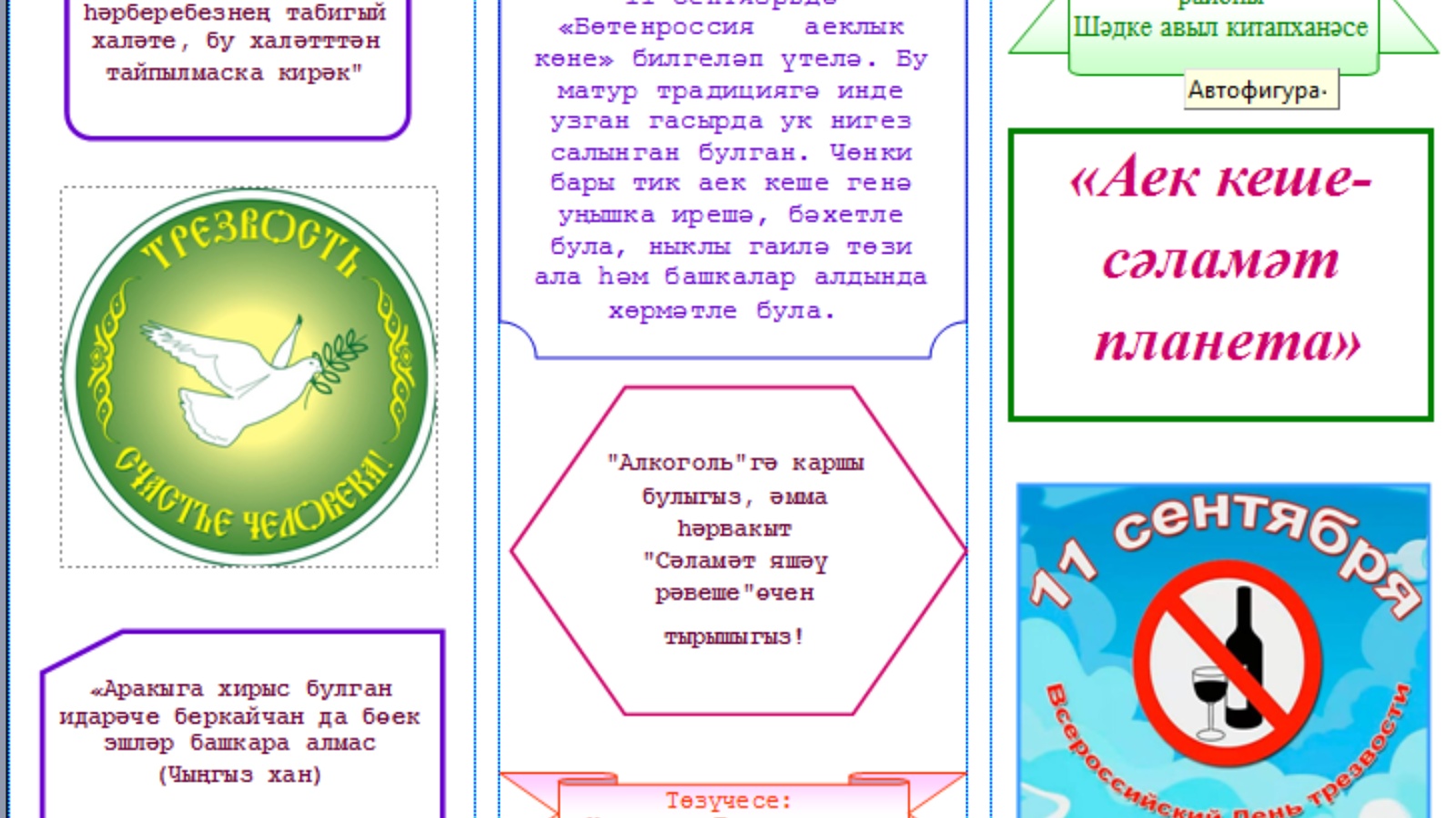 11 сентября в рамках Всероссийского Дня трезвости в Шадкинской сельской библиотеке прошла здоровая акция «Мысли трезво».