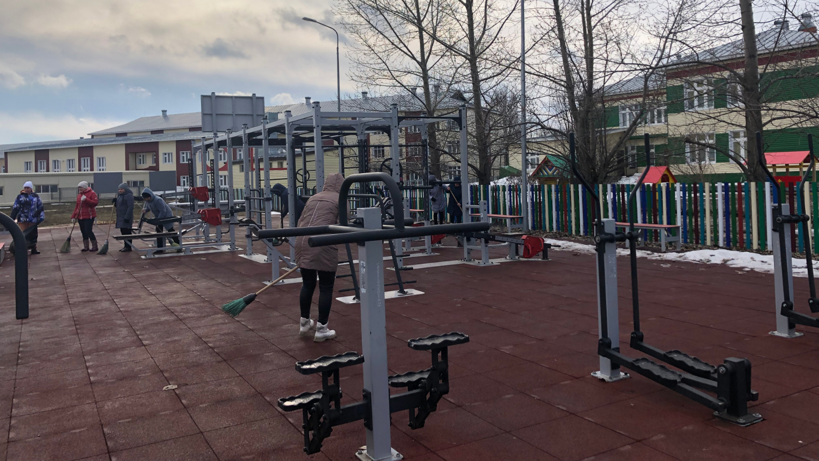 Проделан огромный объем работы: подметены дорожки, почищены площадка ГТО и детские игровые площадки, велодорожки, началась уборка по периметру парка …