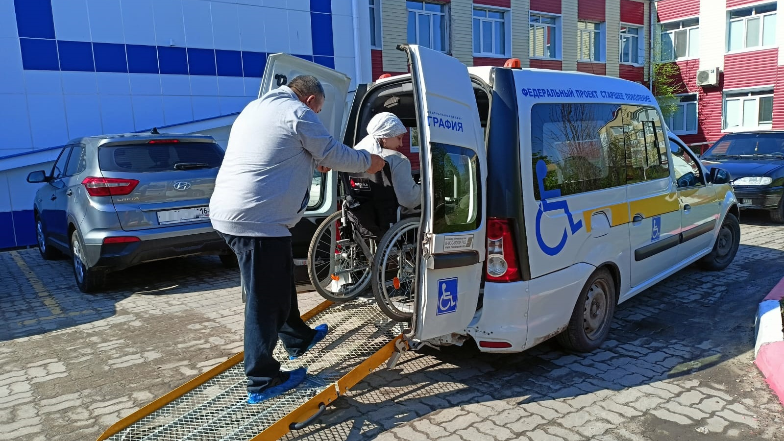 Доставка осуществляется на автотранспорте комплексного центра. Вместимость автомобиля – 5 пассажирских мест, в том числе одно место для гражданина на кресло-коляске. Специальная версия автомобиля оснащена аппарелью, по которой пассажир может заехать в автомобиль на коляске.