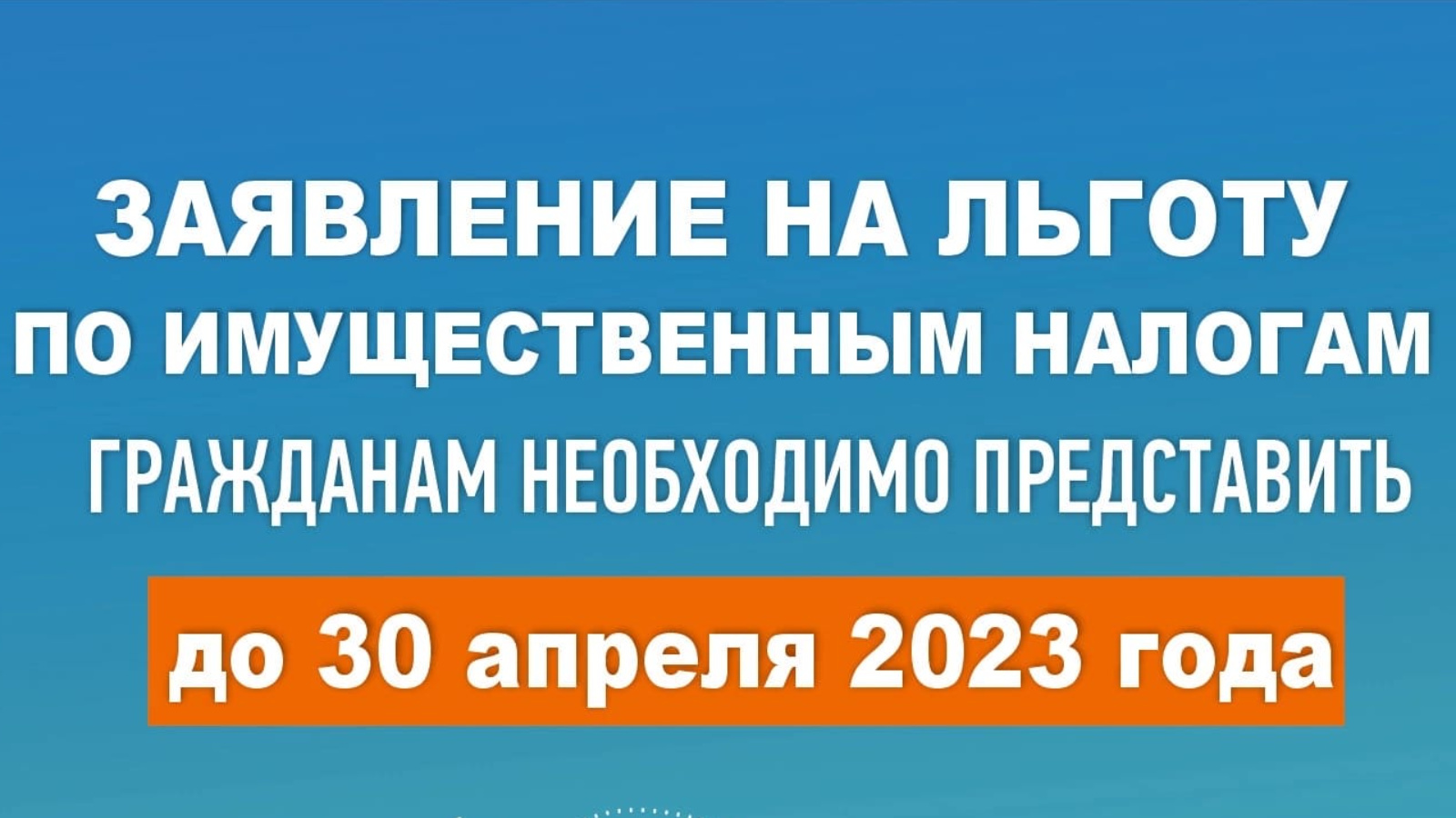 Федеральная налоговая служба рекомендует предоставить заявление на льготу по имущественным налогам до 1 мая 2023 года для учета льготы при исчислении имущественных налогов до направления налоговых уведомлений за 2022 год.