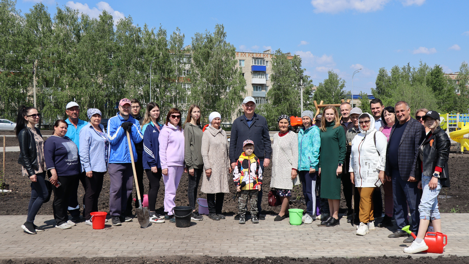 Здесь в рамках завершения строительства сквера, который находится в микрорайоне Яшлек города Нурлат, проводится завершающий этап благоустройства, параллельно ведется и озеленение территории.