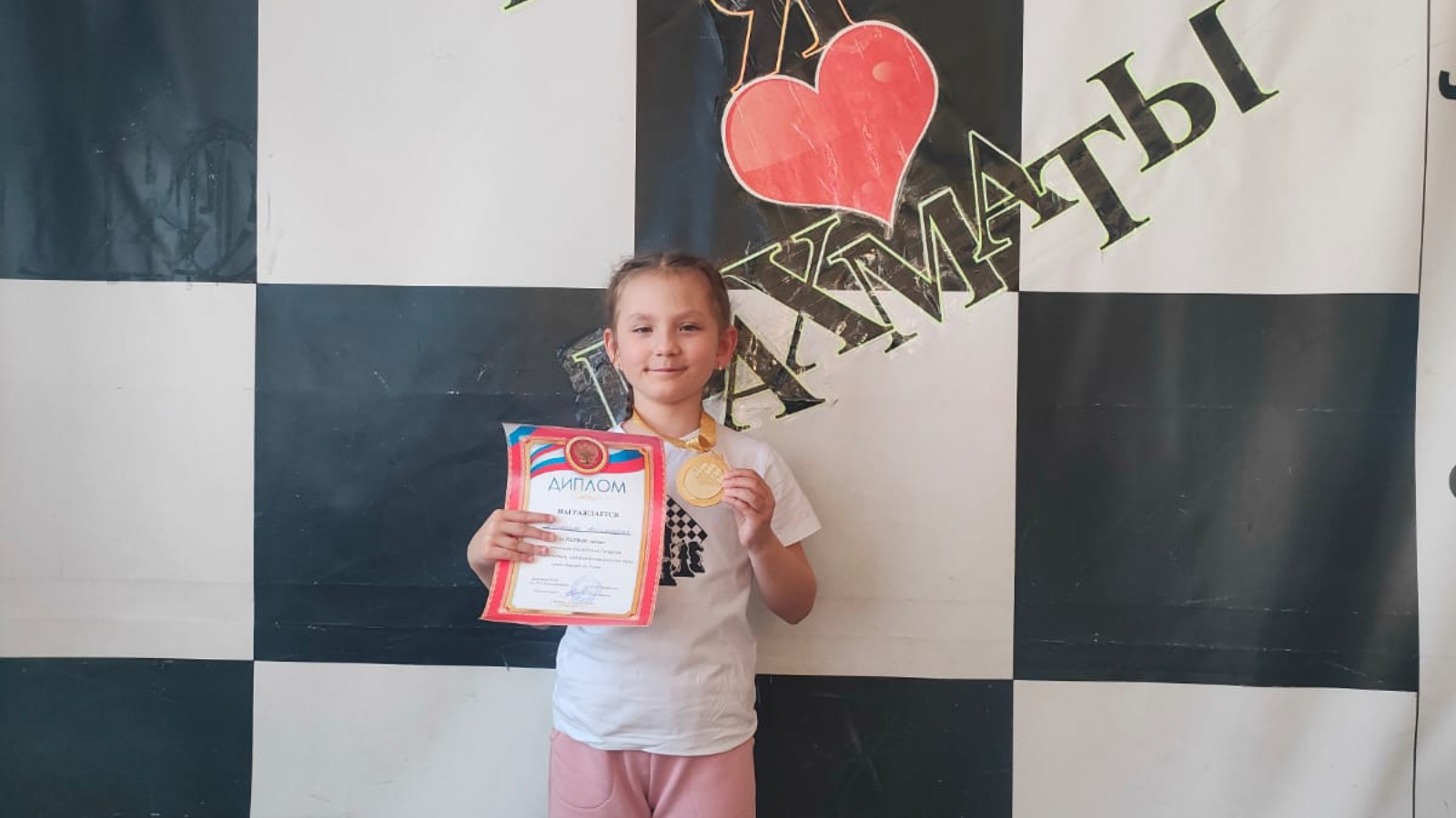Первое место заняла воспитанница шахматной школы имени Р. Г. Нежметдинова Демагина Аполлинария (тренер Р. И. Цветкова). Поздравляем спортсменку и тренера, желаем дальнейших побед!