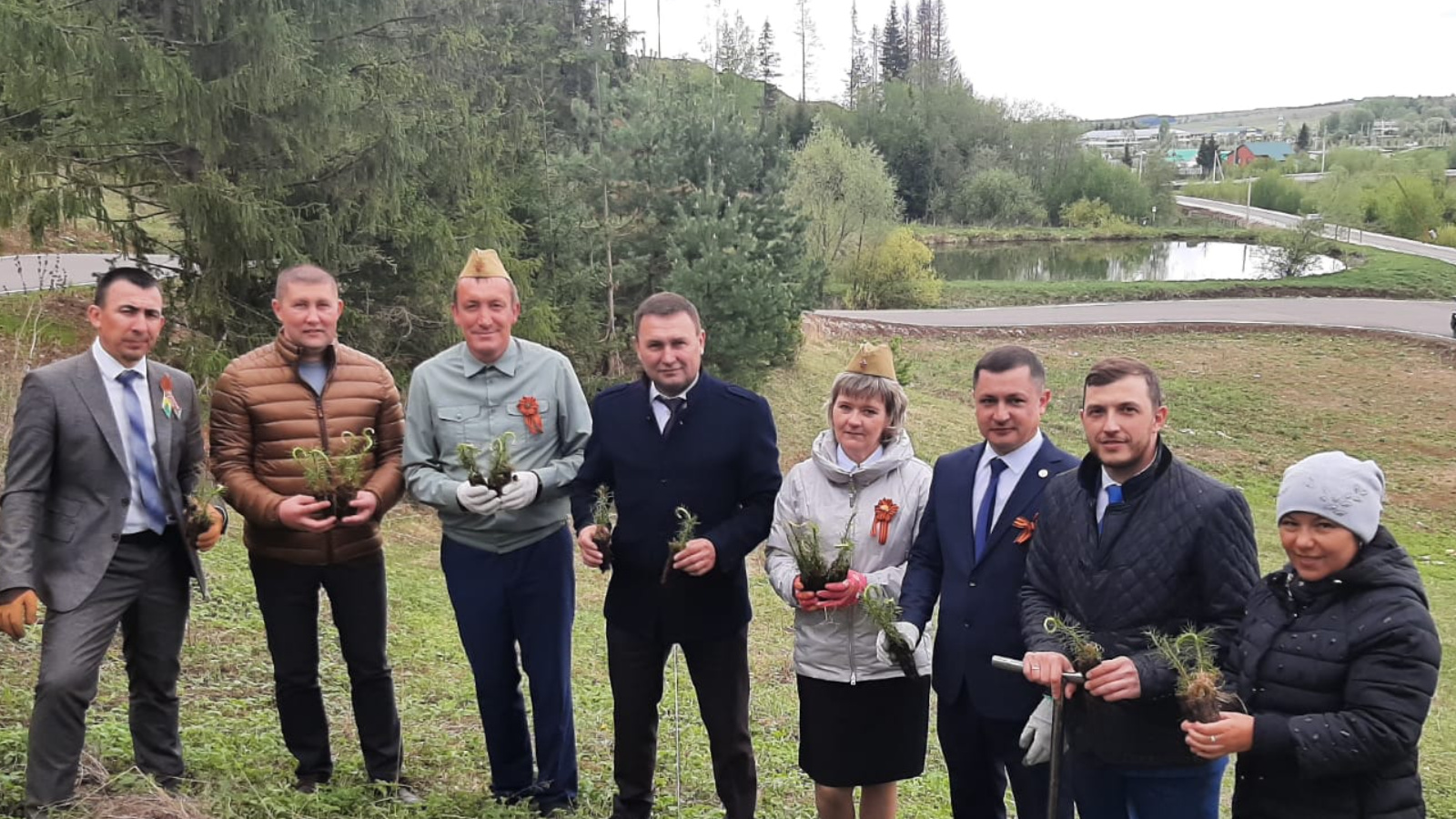Руководители организации и учреждении Изминского СП в честь дня победы посадили деревьи в близ лыже-роллерной трассы д.Илебер.