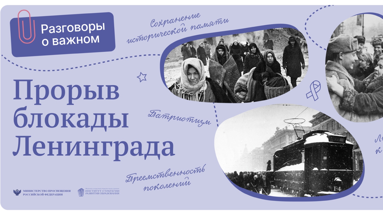 16 января 2023 года, накануне дня снятия блокады Ленинграда, в рамках единого классного часа во всей школе говорили о блокаде города, во время которой необычное мужество и стойкость проявили жители города и о великом подвиге людей. Цель урока: сформировать у учащихся конкретный образ обстановки, сложившейся в блокадном Ленинграде в 1941-1944 гг.