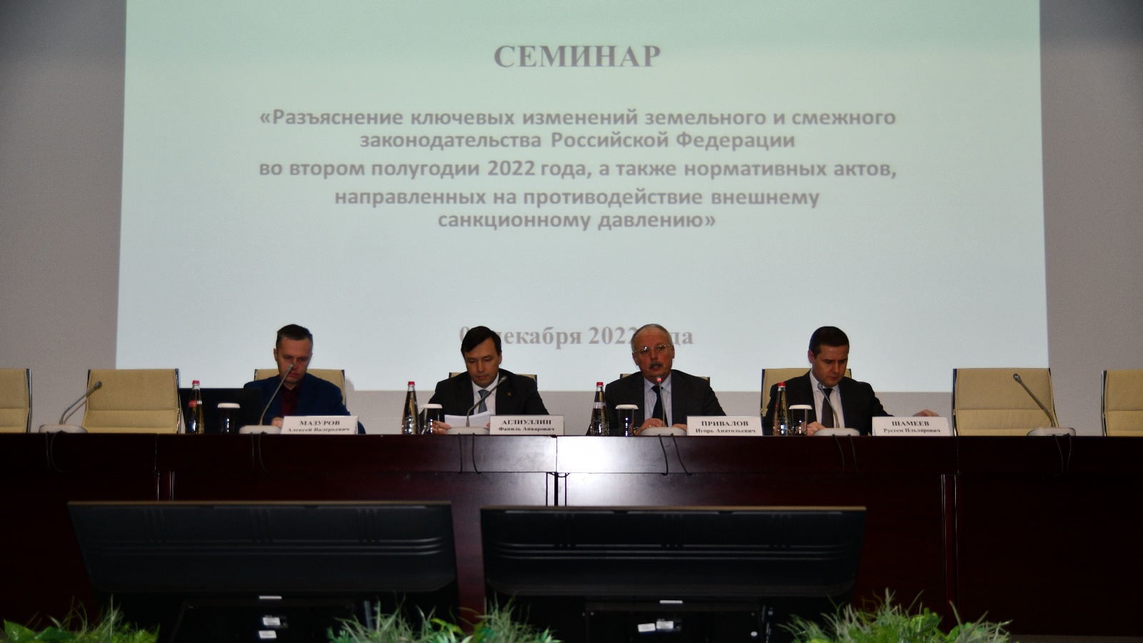 Сегодня в рамках оказания методологической помощи муниципальным образованиям республики конференц-холле Учебно-методического центра ФАС России прошел очередной обучающий семинар для специалистов в области имущественных и земельных отношений на тему: «Разъяснение ключевых изменений земельного и смежного законодательства Российской Федерации во втором полугодии 2022 года, а также нормативных актов, направленных на противодействие внешнему санкционному давлению». Данный семинар организован Минземимуществом РТ совместно с Высшей школой государственного и муниципального управления Казанского Федерального Университета, с которой Министерство давно и плодотворно сотрудничает по вопросам обучения специалистов.