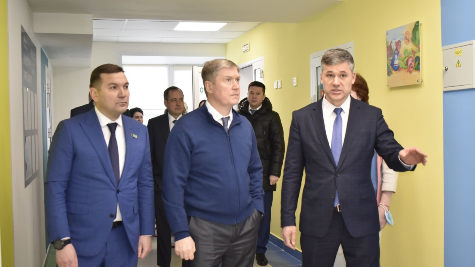 Гости посетили только что завершившуюся реконструкцию детской поликлиники центральной районной больницы. Здесь выполнено работ на сумму 35 миллионов рублей. Скоро детям все медицинские услуги будут оказываться в отдельном здании.