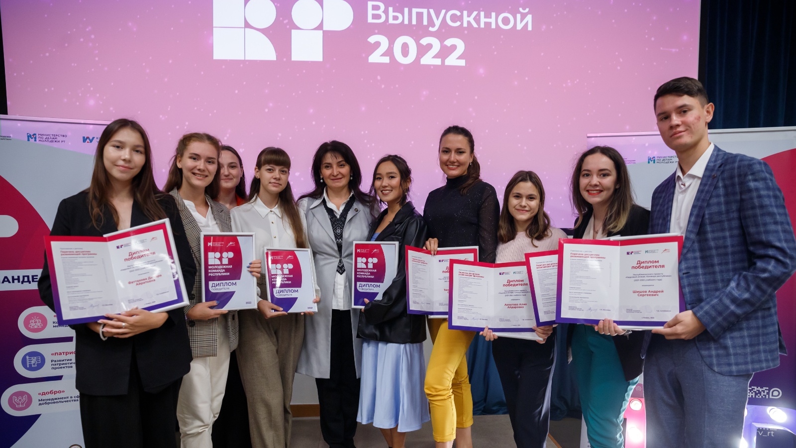 Вице-премьер наградила абсолютных победителей проекта. Они прошли всю развивающую программу, реализовали четыре мероприятия охватом более 150 человек, стали волонтерами в важных мероприятиях не только муниципального или республиканского масштаба, но и всероссийского, прошли стажировку у стейкхолдера выбранного направления, а также упаковали свою идею в проектное решение и сделали первые шаги в реализации.