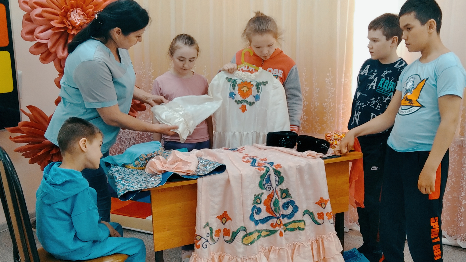Воспитанники познакомились с культурой татарского народа, национальными костюмами, особенностями орнамента, бытом татарского народа, праздниками. Также дети узнали значение некоторых слов, обозначающих татарскую национальную одежду: камзол, калфак, тюбетейка.