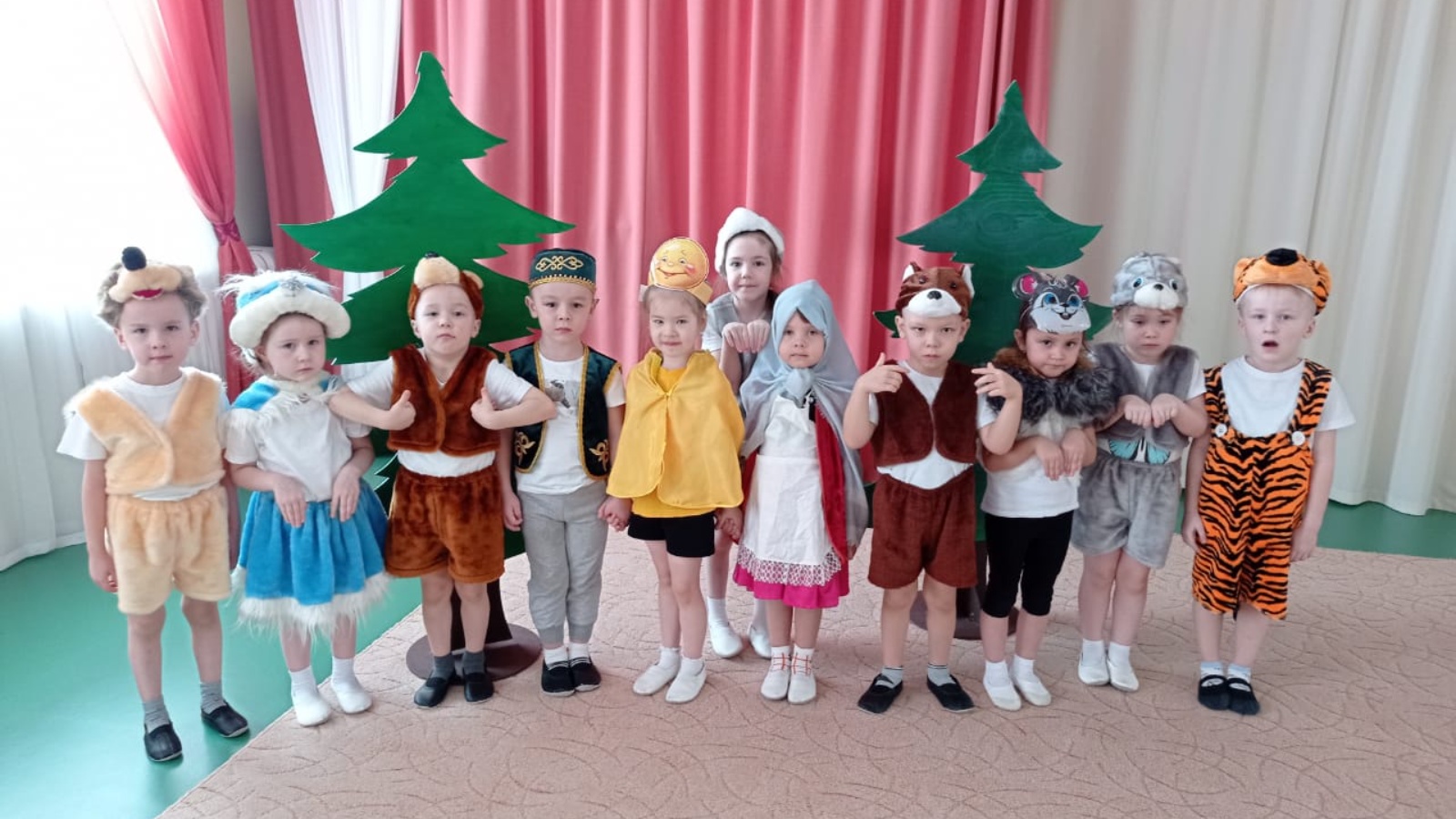 Завершая тему недели, ребята из взрослой группы Илеберского детского сада "Умырзая" поставили сказку "Йомры күмәч" ("круглые булочки"). Круглую булочку не отдавали зверям, а привозили бабушке и дедушке.