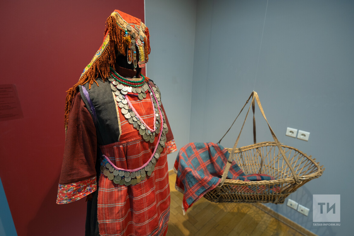 Живопись, графика и преимущественно предметы быта, декоративно-прикладного искусства удмуртов стали экспонатами новой выставки в Национальной галерее «Хазинэ». Здесь и весы для шерсти, и старинный «станок» льнотрепалка, и большая шумовка, но не из металла, а из переплетенных ветвей растений, и даже кузнечные мехи – более сотни экспонатов, среди которых, конечно, и народные костюмы. А также офорты известного художника Менсадыка Гарипова, графические работы Михаила Кузнецова.