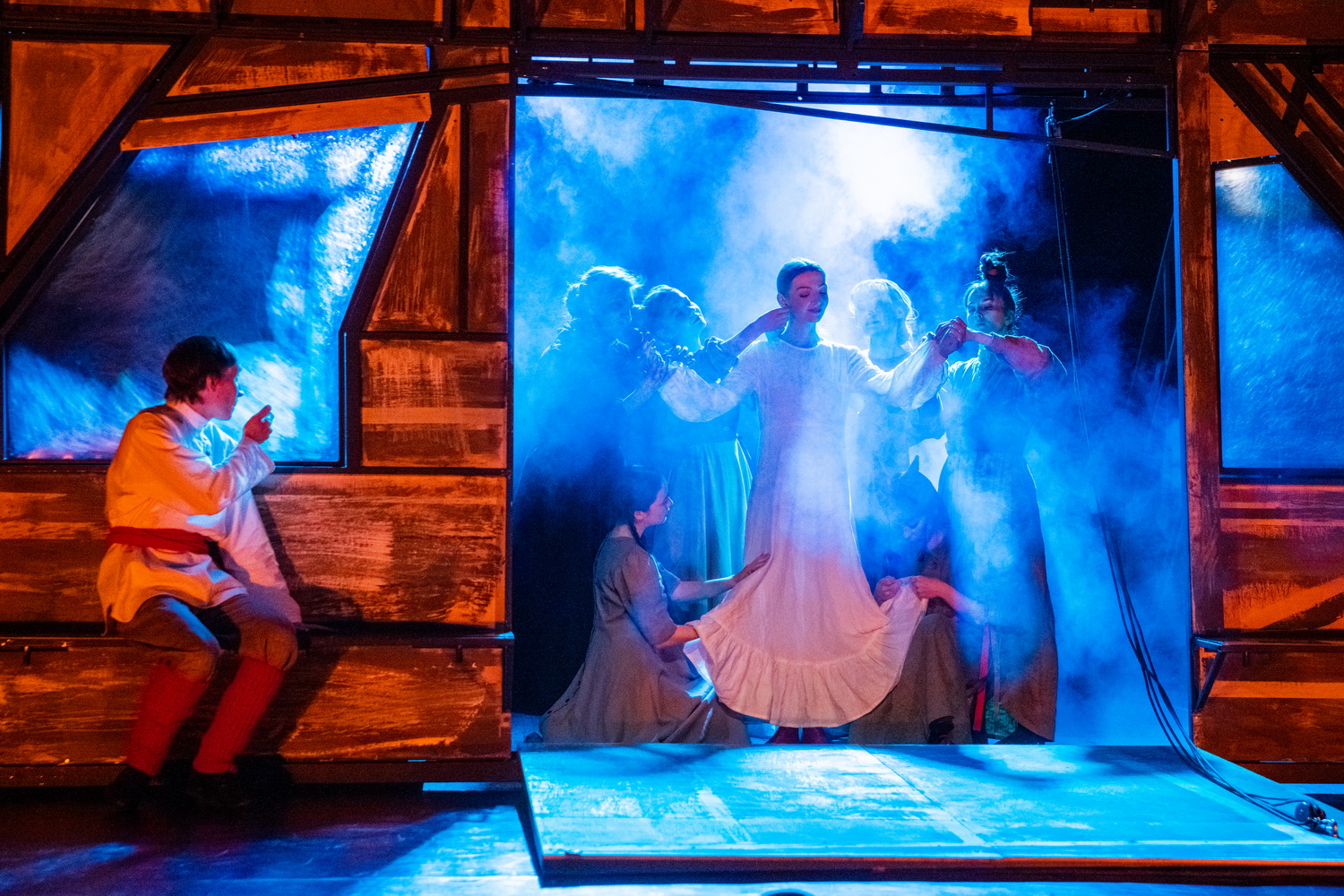 Я бы добавил в это список работу сценографа и художника по костюмам Надежды Ивановой. Костюмы выполнены с элементами русского народного стиля, но их вполне можно представить как на современном человеке, так и на модных подиумах, а декорации рождают в воображении старинный сказочный древнерусский город, не являясь по сути воспроизведением ни крепости, ни усадьбы, ни посада.
