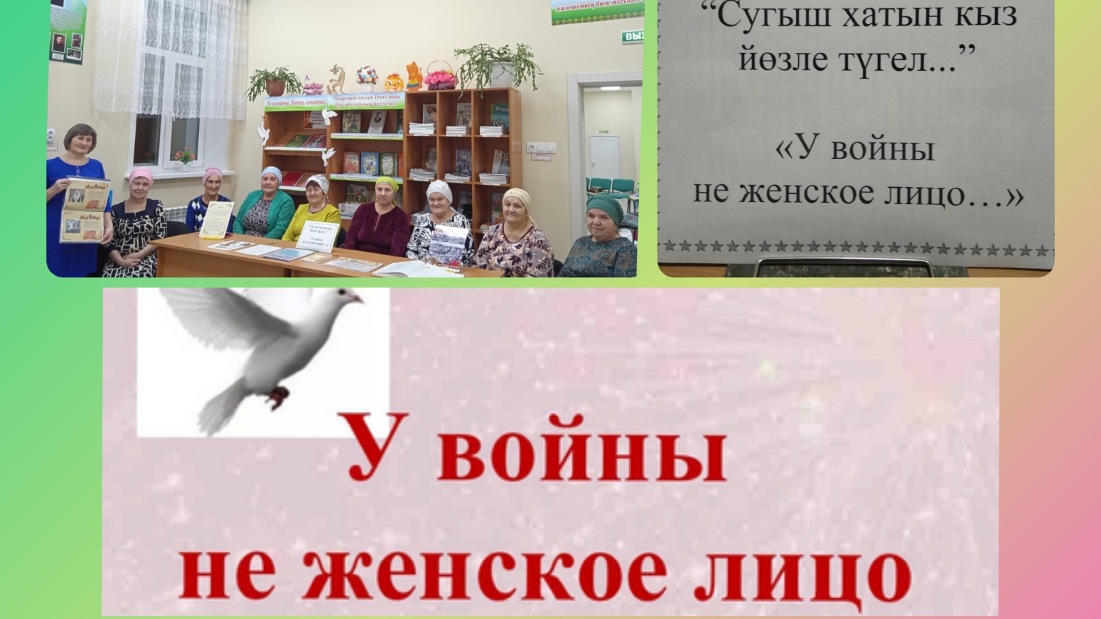 В целях сохранения памяти о героическом прошлом женщин, фронтовиков и детей военных лет, участвовавших в Великой Отечественной войне 1941-1945 гг., и воспитания уважения и гордости за их героическое прошлое, в Айдаровской сельской библиотеке проведена тематическая беседа «Нам сердце приказало в тылу Отечество спасать», посвященная женщинам-фронтовикам. Мероприятие прошло в рамках проекта «Война – не женское лицо». Хотя и говорят, что военная служба не для женщин, наша благодарность безгранична мужественным женщинам села и детям войны, которые наравне с мужчинами вынесли тяготы военных лет.