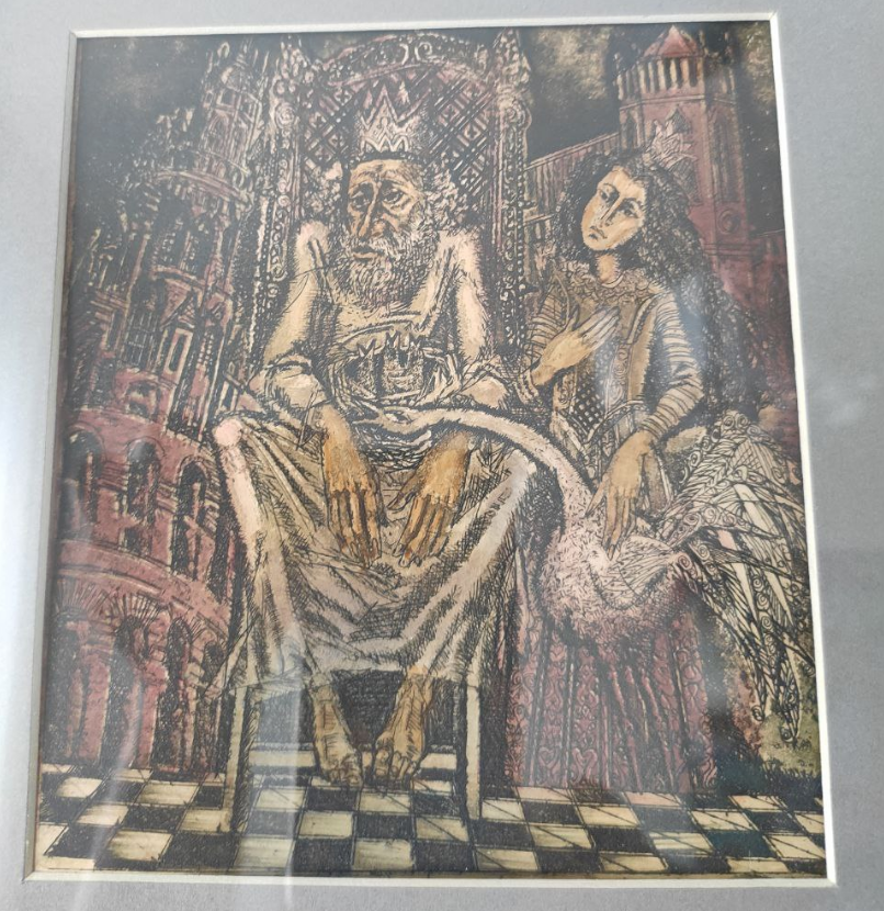 Картина выполнена в печатной технике — офорт. Это техника достаточно сложная, объясняет Зульфия Султанова. Рисунок сначала наносится на металл, потом производится травление поверхности печатной формы кислотами. В какой-то мере это даже вредная работа для того, кто ею занимается.