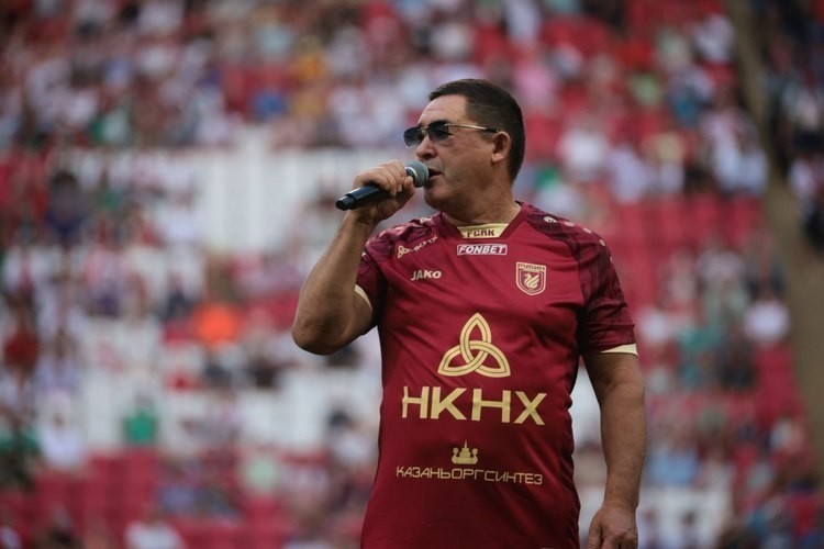 Артист спел песню «Мин яратам сине, Татарстан» перед стартовым свистком. Отметим, что исполнитель вышел в футболке казанского «Рубина».