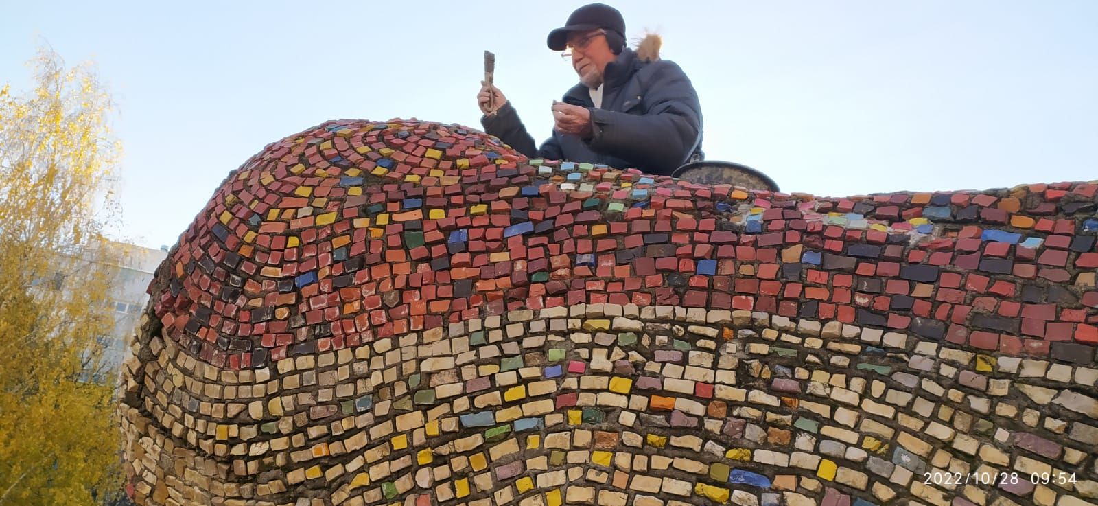 Группа челнинских мастеров под руководством народного художника Татарстана, заслуженного художника России Владимира Акимова половину октября провела на площадке под открытым небом, выполняя свою профессиональную задачу. Для работы было закуплено 200 килограмм смальты, именно эти разноцветные стеклянные камушки и придают уникальность данным произведениям искусства.