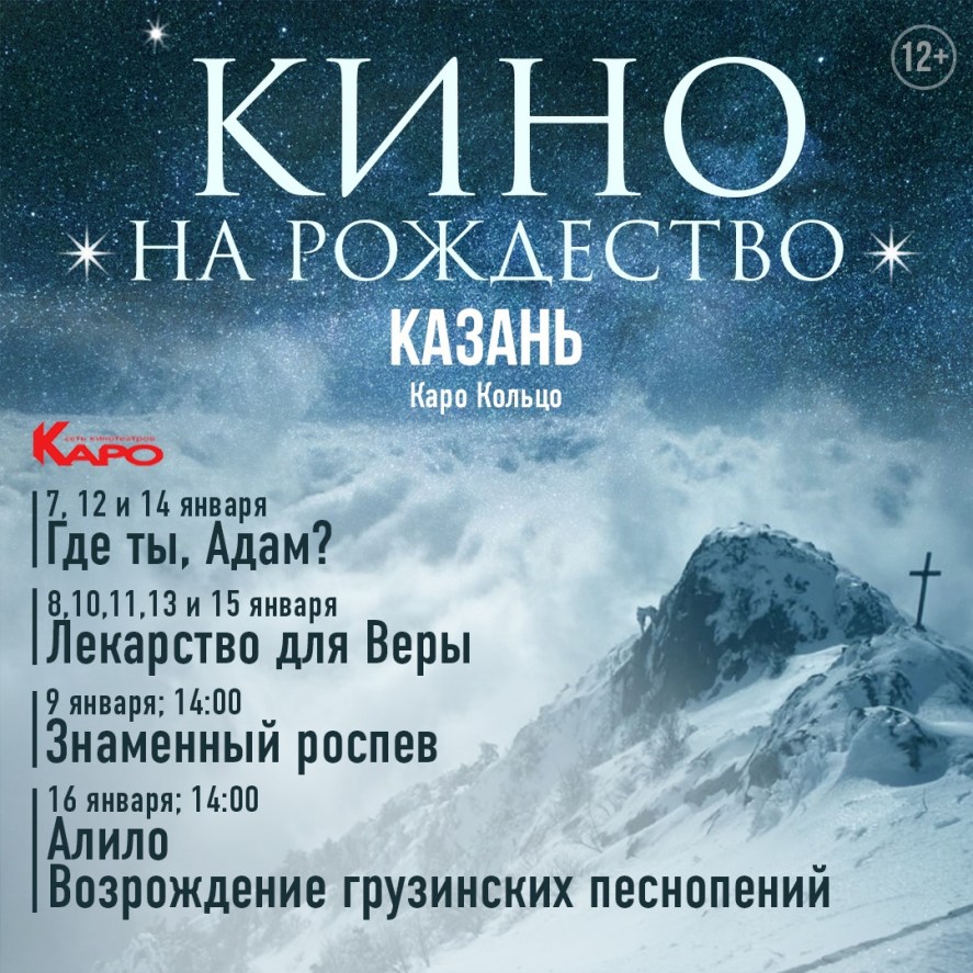 С 7 по 16 января в Казани в кинотеатре «КАРО» (ул. Петербургская, д. 1, ТЦ «Кольцо») в рамках проекта «Кино на Рождество» будут проходить показы душеполезных фильмов.