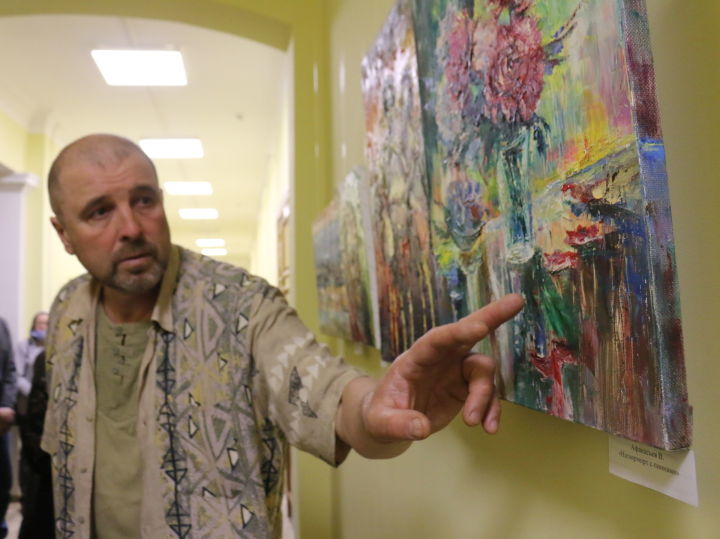 В просторном зале краеведческого музея соседнего Волжска открылась выставка картин известного зеленодольского барда, туриста, врача-анестезиолога Владимира Афанасьева