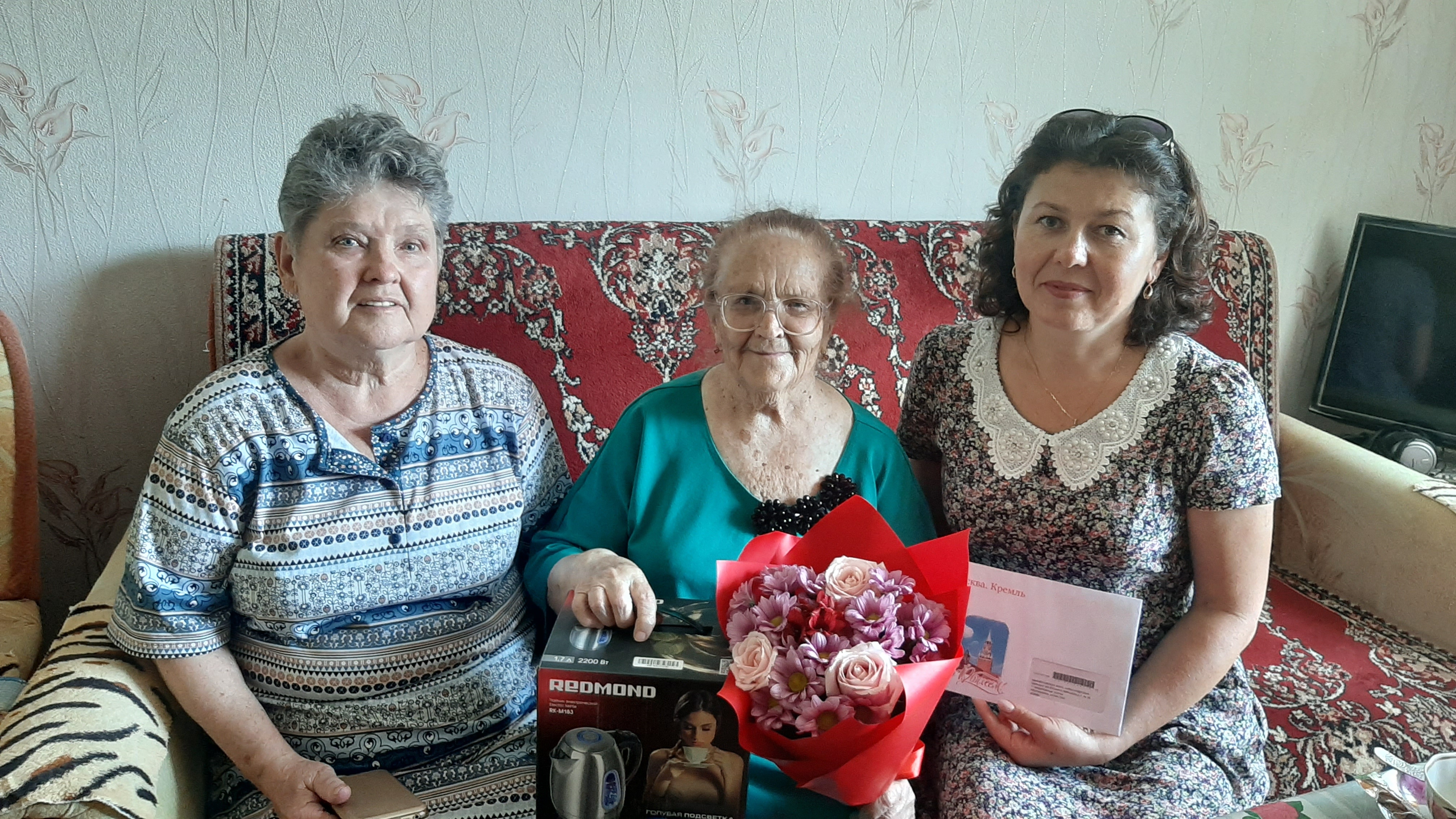 В Комсомольском районе 95-летний юбилей со дня рождения отмечает ветеран Великой Отечественной войны Анна Александровна Михайловская. Поздравления и подарки от имени президента РФ Владимира Путина, мэра г. Набережные Челны Наиля Магдеева, депутата Государственного Совета Республики Татарстан Марселя Мингалимова и от себя лично юбиляру вручила и.о. заместителя главы администрации Комсомольского района Алсу Хамматова.