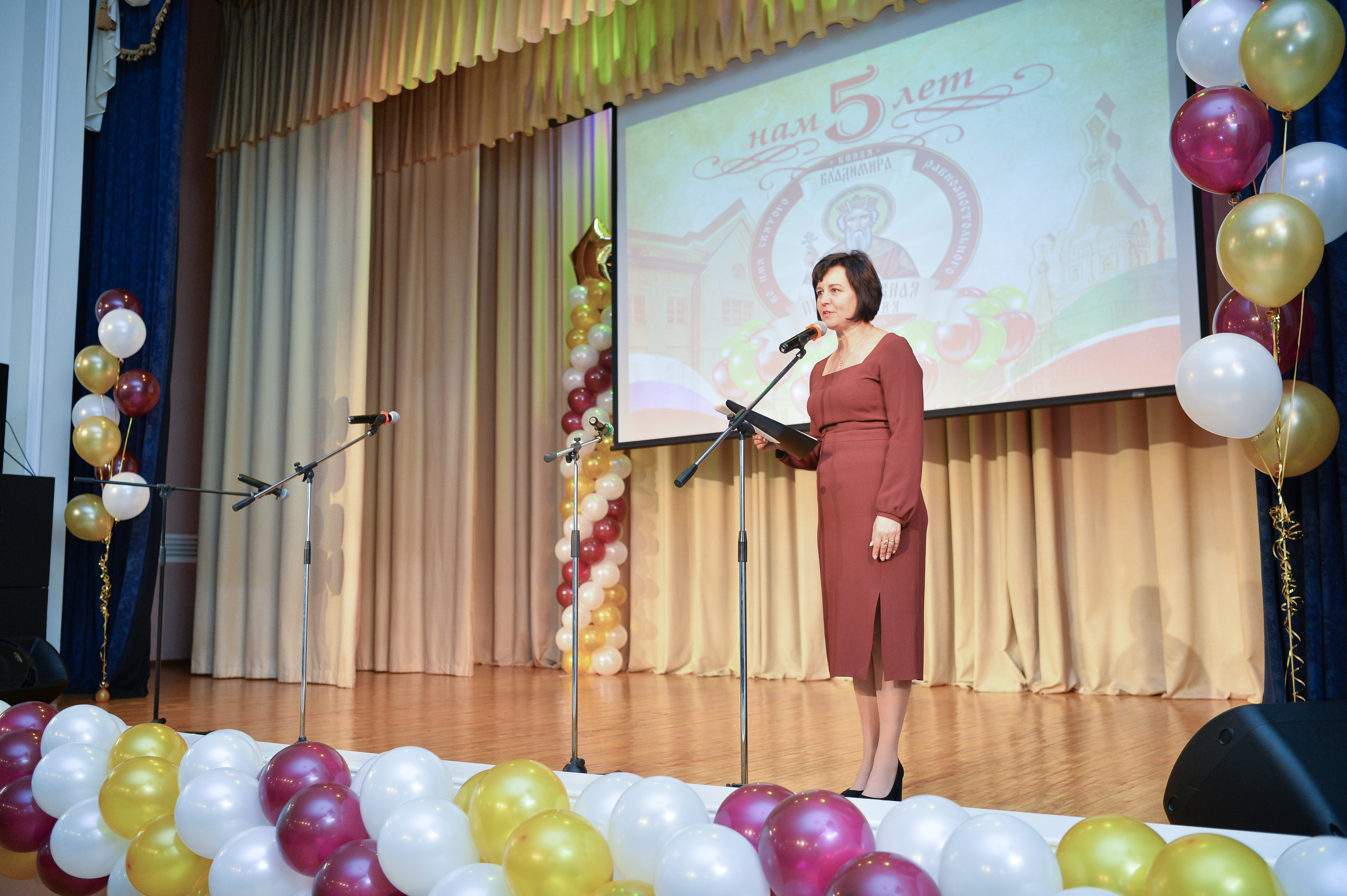 Празднование первого юбилея началось с торжественной части. Праздничный концерт, посвященный 5-летию Православной гимназии состоялся в Молодёжном центре Альметьевска.