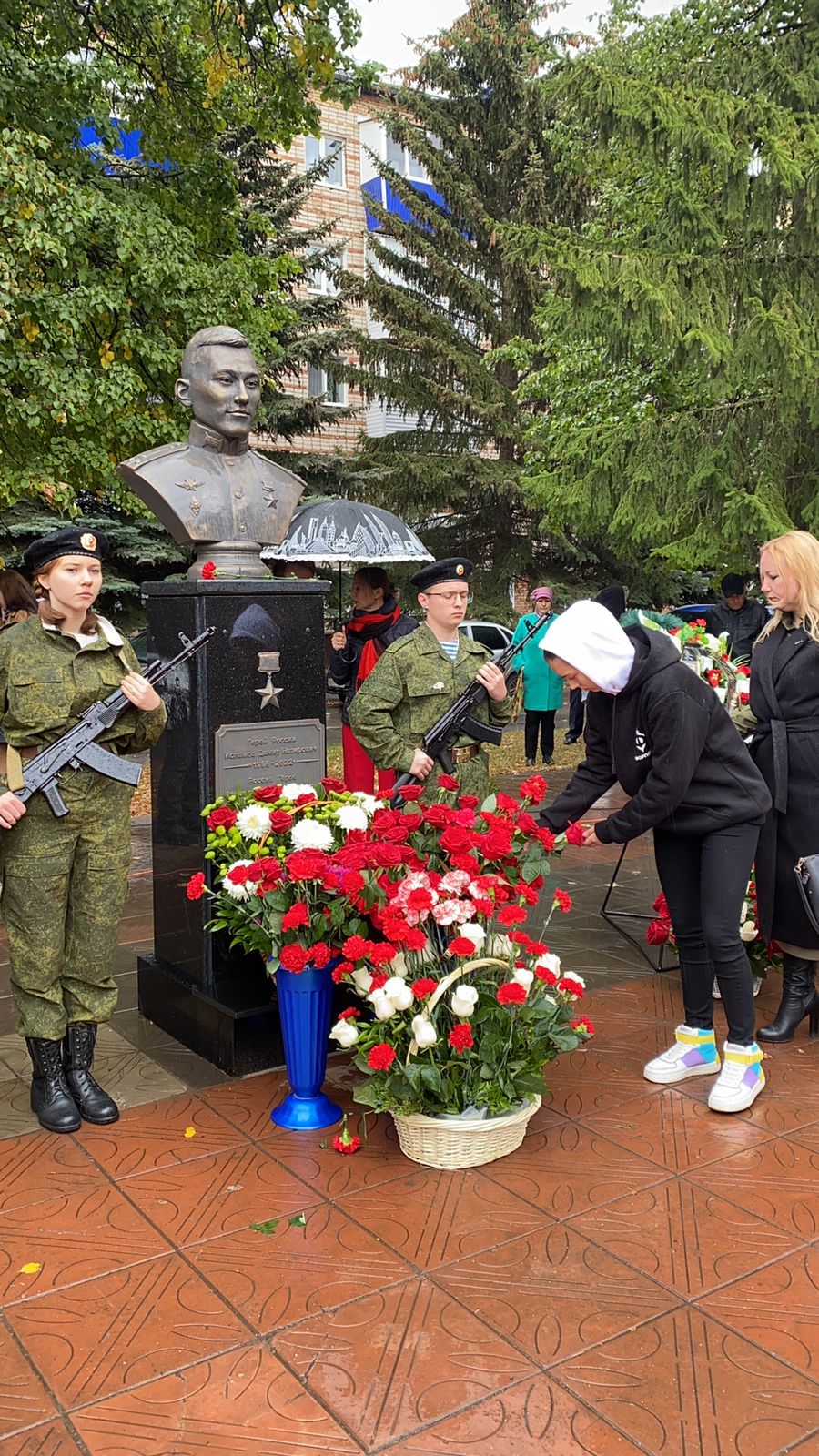 Сегодня на аллее героев прошло открытие памятника герою России Дамиру Исламову, который героически погиб, участвуя в специальной военной операции на Украине. Студенты колледжа приняли участие в памятном мероприятии, в составе городского отряда общественного порядка «Форпост», почтили память героя, возложили цветы к памятнику.