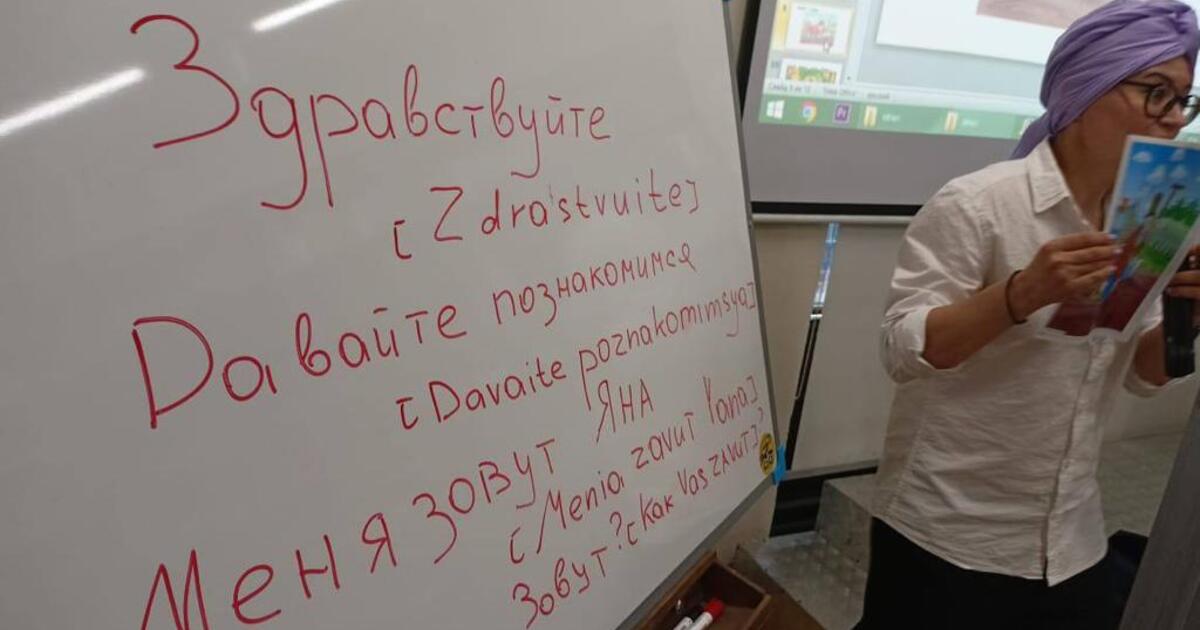 Первые гости начали изучать русский со сказки «Репка». Они выучили приветствия и фразы выяснения степени родства.