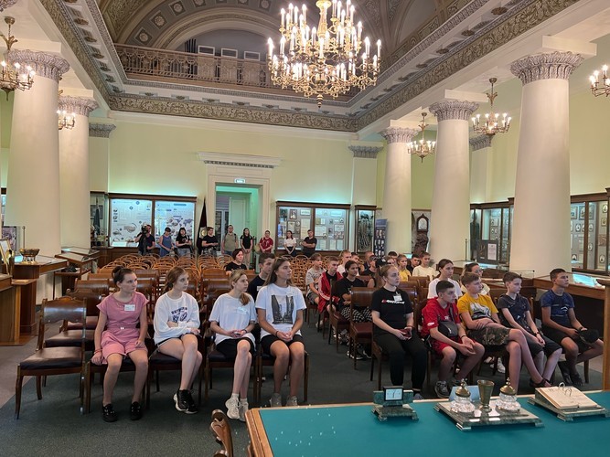 В первый день смены участники смены посетили музеи университета: Музей истории КФУ, зоологический, гербарий, этнографический и музей им. Лобачевского. Ребят поделили на пять групп, каждая из которых посетила одну выставку. После их проводили на обед, а затем приезжих ждет дорога в Елабугу.