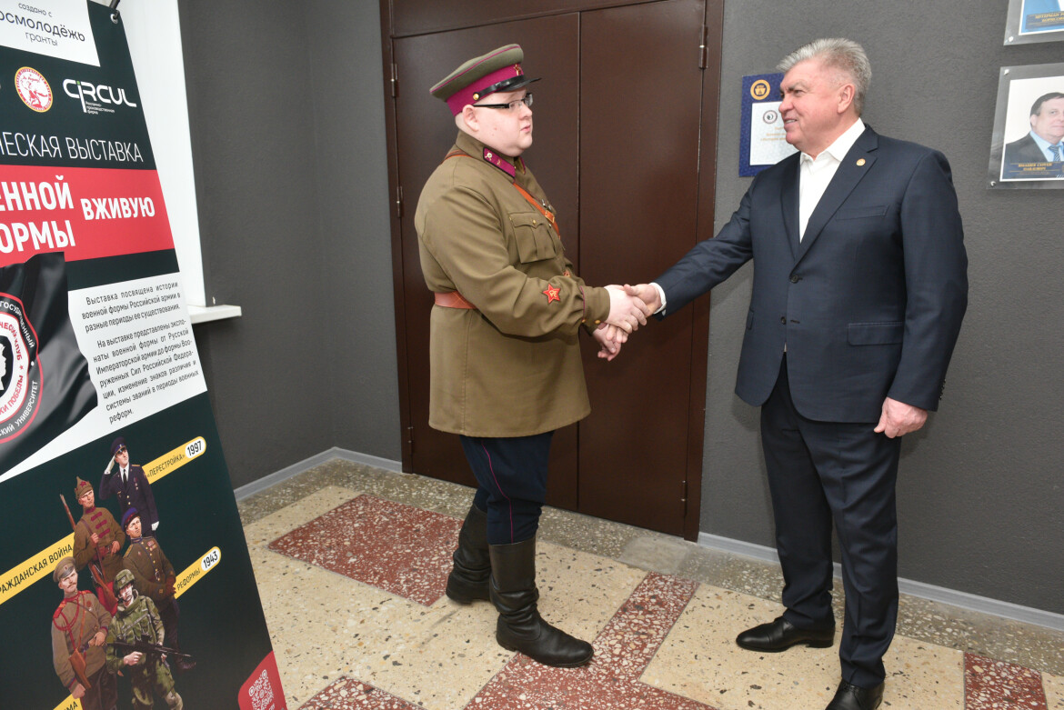 На создание военно-исторического музея в вузе было выделено 600 тыс. рублей грантовых средств. Проект мэру презентовал студент НГПУ Рахим Хисматов.