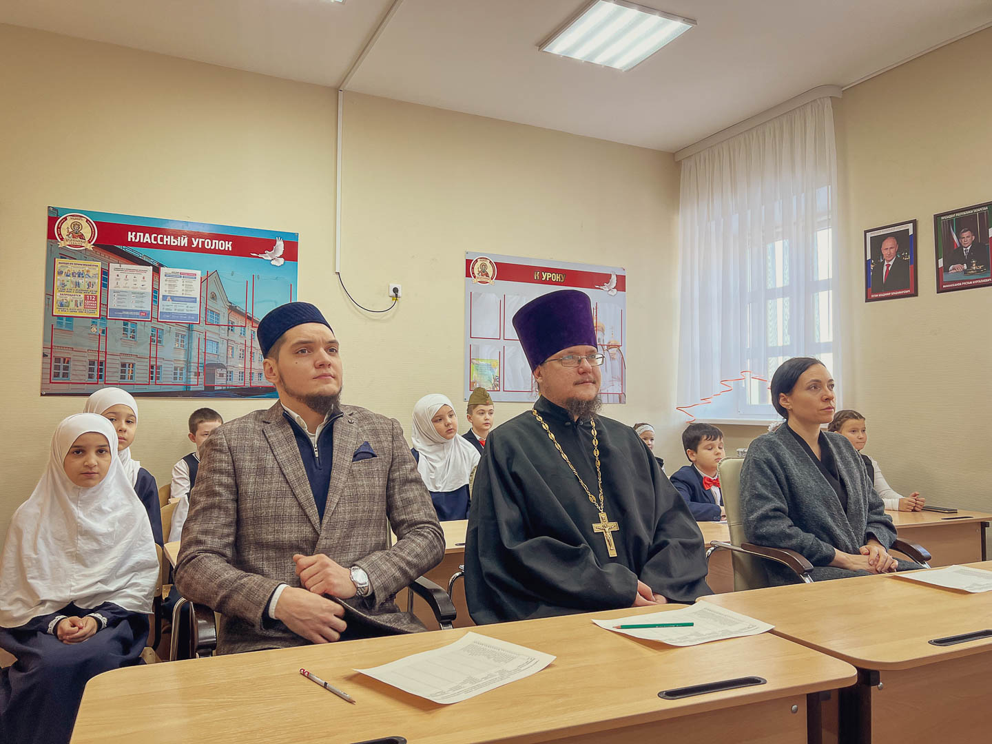 В состав жюри группы юных участников вошли помощник благочинного Альметьевского округа иерей Андрей Глубоковский, Заместитель имама-мухтасиба г. Альметьевска по социальным вопросам — Рузиль хазрат Ихсанов. Модератором выступила преподаватель гимназии – Регина Игоревна.